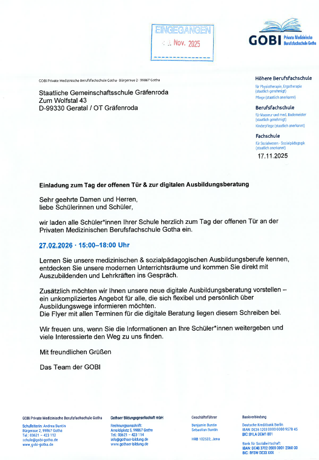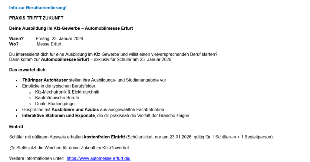 Schulsprechstunden zur beruflichen Orientierung Schuljahr 2025/26